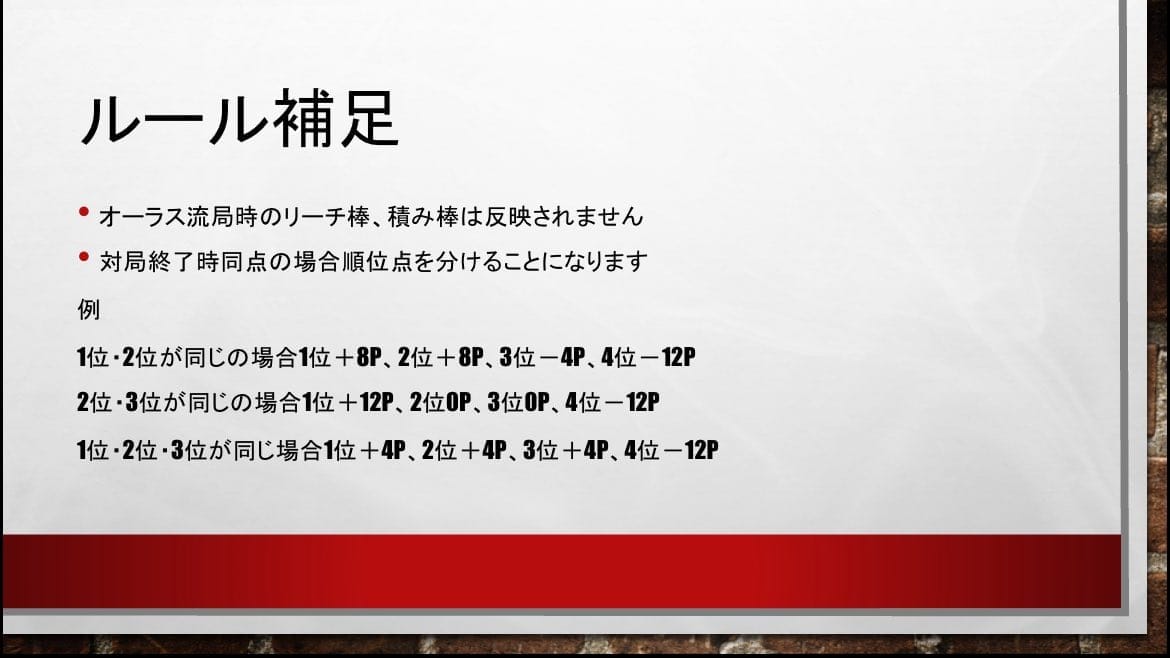 南1局は全員ノーテン、南2局は中・YT配信用選手が1000・2000は1100・2100のツモアガリ。