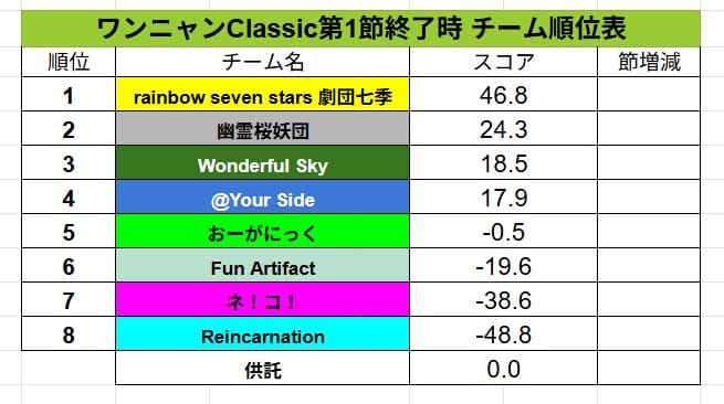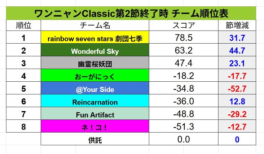 @your Sideが後退し、最下位だったReincarnationはプラスで2つ順位を上げた。