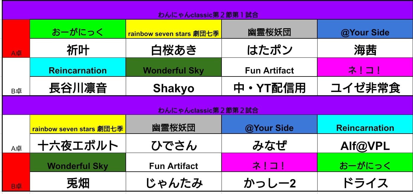 前節までの結果と今節の卓組は次の通り。