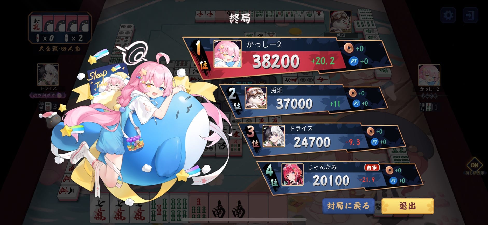 席順は起家からじゃんたみ選手(Fun Artifact)・かっしー2選手(ネ!コ!)・兎畑選手(Wondeful Sky)・ドライス選手(おーがにっく)。